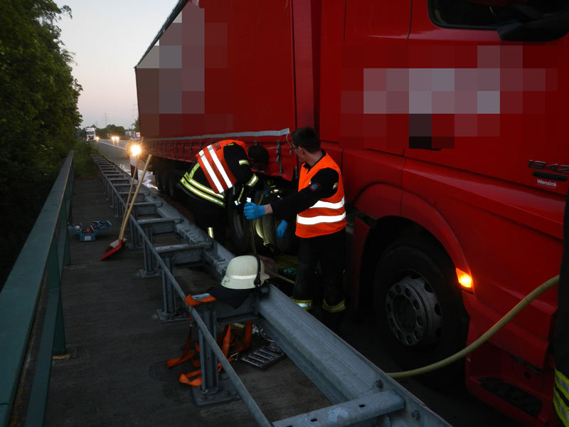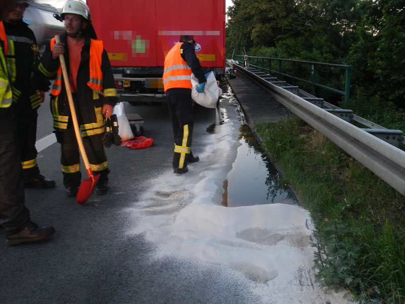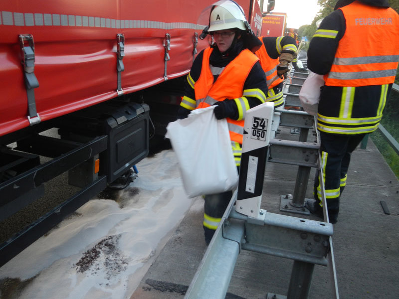 Technische Hilfe: Öl BAB, läuft Diesel aus defektem Lkw-Tank