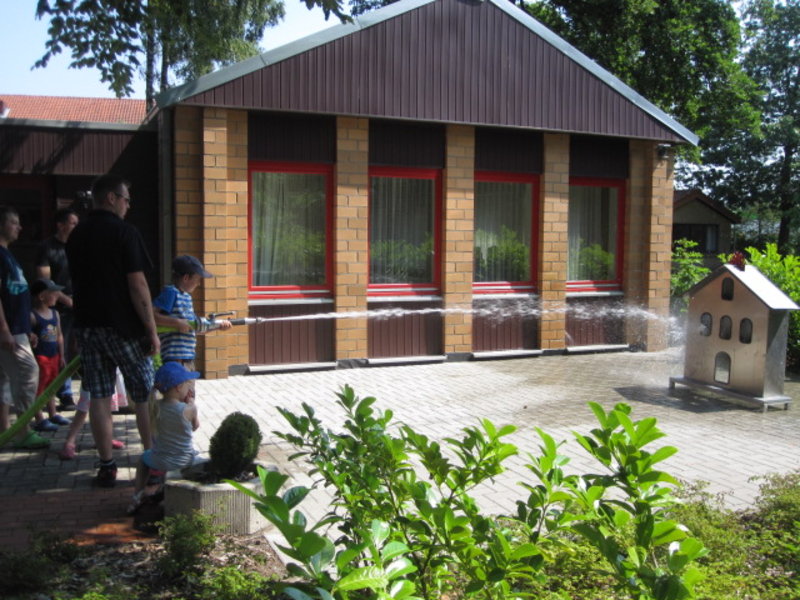 Rund 20 Kinder nahmen bei hochsommerlichen Temperaturen an der Veranstaltung teil. Auch auf Grund des Wetters drehte sich an diesem Tag natürlich alles um das kühle Nass. So wurde unter anderem ein „Lösch-Geschicklichkeitsparcours“ aufgestellt und eifrig genutzt.