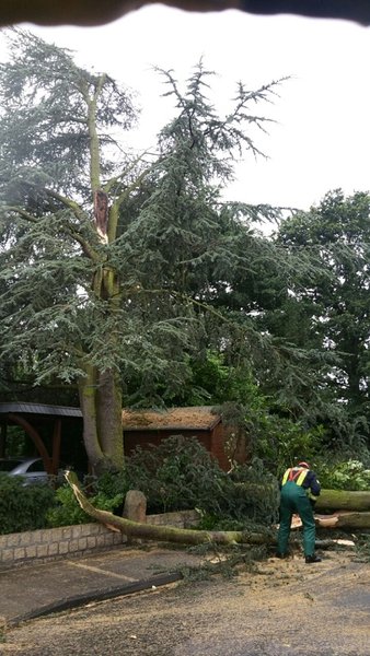 -olb- Am Samstagnachmittag wurden die hauptamliche Wache und der Löschzug Stadtmitte 2 zunächst zu einem umgestürzten Baum an den Abendsternschacht alarmiert.