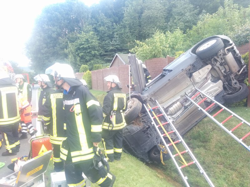 Der Pkw war zuvor mit Unterbaumaterial und Steckleiterteilen stabilisiert worden.