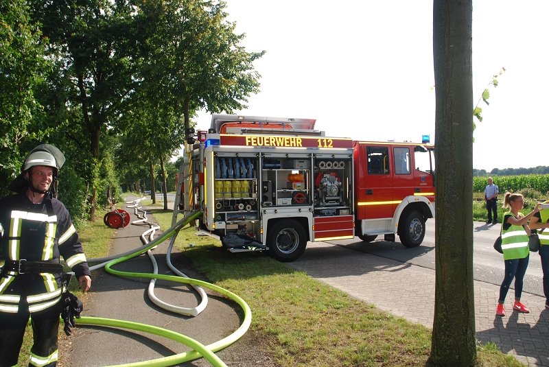 Durch den Einsatz mehrerer C-Rohre, einem B-Rohr und dem Wasserwerfer der Drehleiter wurde das Feuer schnell unter Kontrolle gebracht.