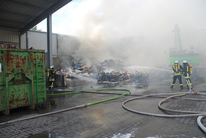 Bei Eintreffen der ersten Kräfte brannte ein 30x20 Meter großes Sperr- und Restmülllager im Außenbereich einer Abfallentsorgungsfirma. Zur Unterstützung wurde sofort der Löschzug Stadtmitte 1 nachalarmiert.
