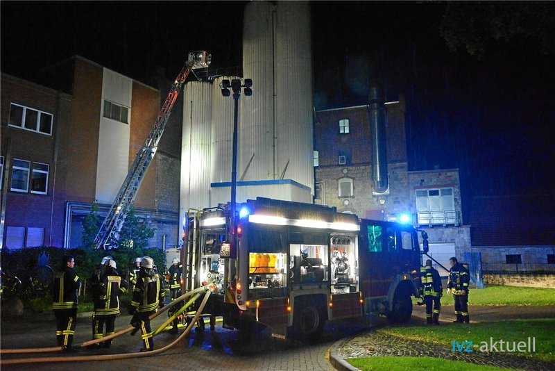 Es brannte in einer Trocknungs- und Filteranlage. Mit mehreren Trupps unter umluftunabhängigem Atemschutz musste die Anlage aufwendig über mehrere Stockwerke geöffnet, kontrolliert und schließlich mittels C-Rohren abgelöscht werden.