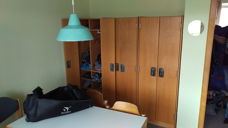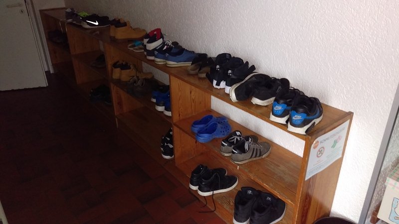 An Tagen wo wir das Schullandheim verlassen, dürfen natürlich alle ihr Handy mitnehmen. Nachts wird das Regal selbstverständlich eingeschlossen damit die Handys vor „Langfingern“ geschützt sind.