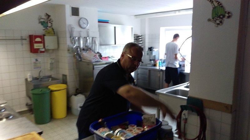 Zum Abendessen servierten Chefkoch Markus und seine Küchencrew leckere Hot-Dogs im Brötchen. Danach wurde noch das Programm für den nächsten Tag bekannt gegeben und der Küchen- und Ordnungsdienst begann mit der Arbeit. Später ließ man den Abend dann noch in Ruhe ausklingen.