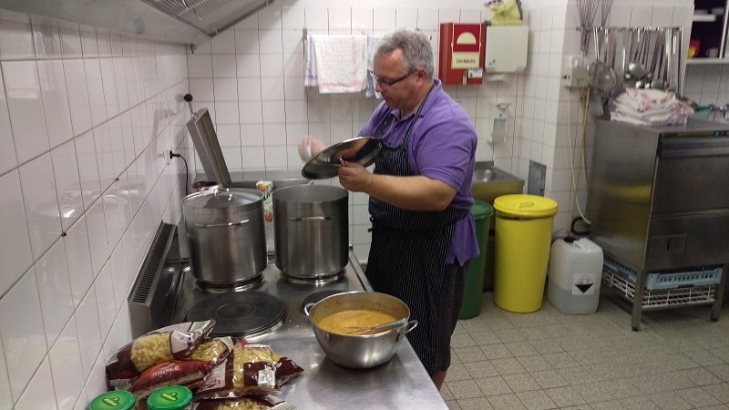 Gegen Abend erreichten wir wieder unsere Unterkunft und speisten, die durch die Küchencrew zubereiteten Nudeln mit Hacksoße.