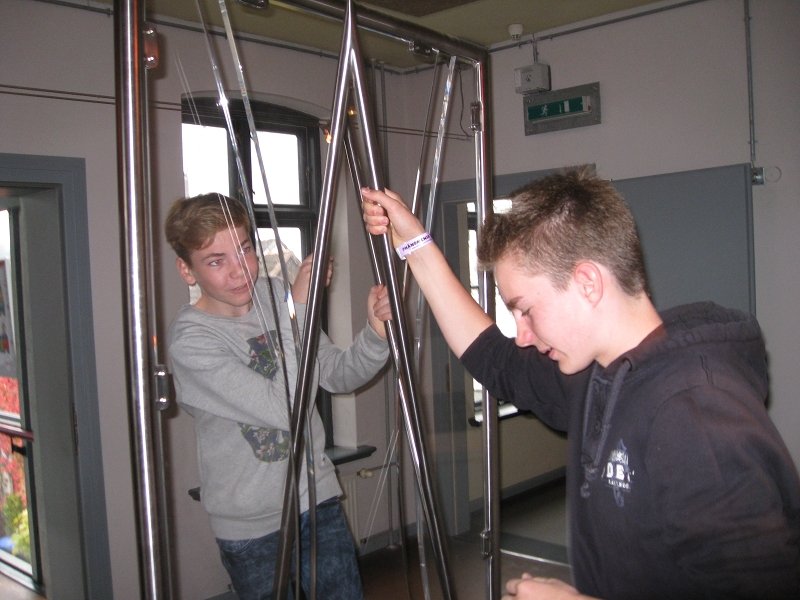 Im direkten Anschluss ging es für die Gruppe in das „Phänomenta“. Das Science Center bietet verschiedenste Möglichkeiten, Physik „live“ zu erleben. Eine Ionenorgel, einen Raumfahrttrainer, einen handbetriebenen Umlenkrollenfahrstuhl und sehr viele weitere Experimente konnten ausprobiert werden.