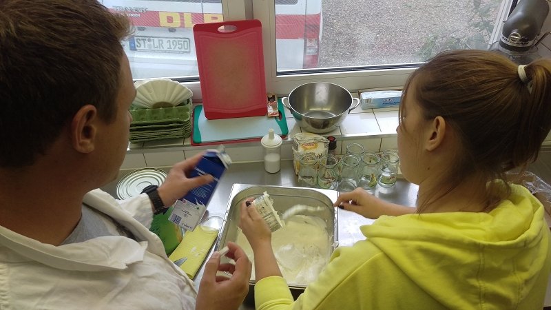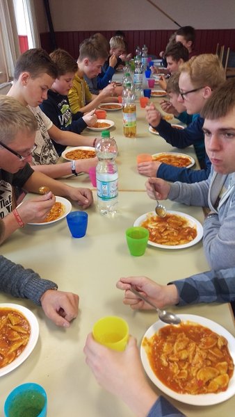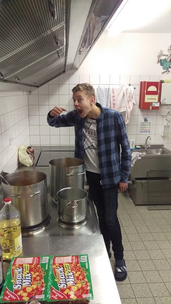 Wieder an der Unterkunft angekommen began Ersatzküchenchef Patrick zusammen mit dem Küchendienst direkt an, leckere Ravioli in scharfer und normaler Soße zuzubereiten. Als Nachtisch gab es leckeren Quark mit Schokostreuseln oder Früchten.