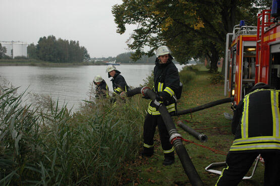 Von der "offenen Wasserstelle Mittellandkanal" wurden vier B-Leitungen für die Hydroschilder vorgenommen, die mit Unterstützung des SW 2000 aus Stadtmitte in einer Fahrt ausgelegt werden können (bis 500 m Länge). Die Vornahme der Hydroschilder durch den LZ Laggenbeck war nicht einfach, da auf dem Werksgelände zwischen den einzelnen Gebäudeteilen wechselnde Windrichtungen herrschen. Als Wasserstellenpumpen waren das TLF 24/50 und ein TLF 16/25, beide Stadtmitte, eingesetzt.