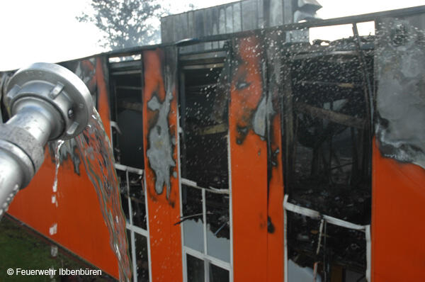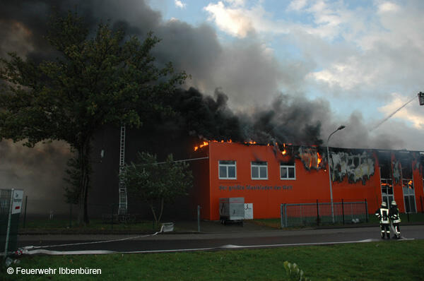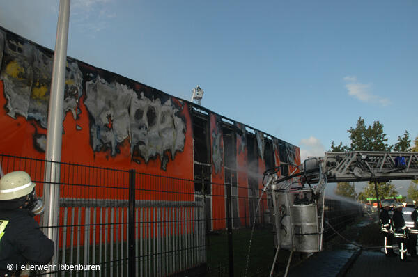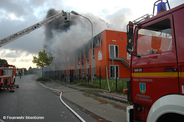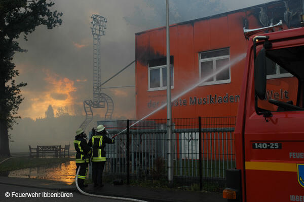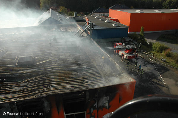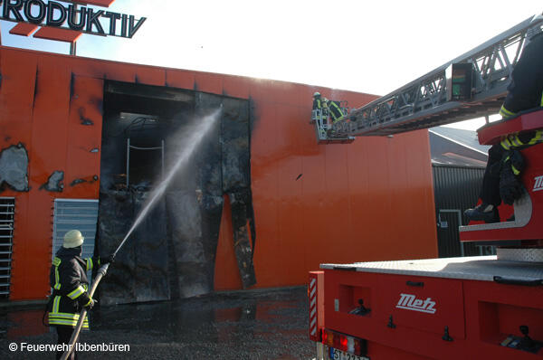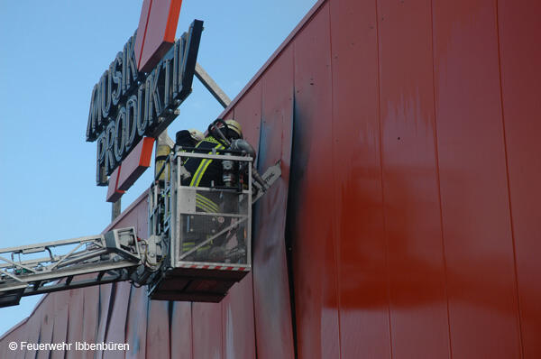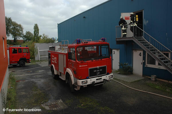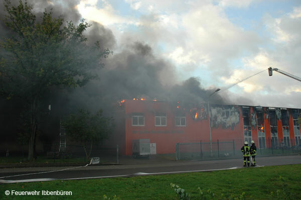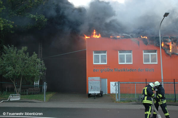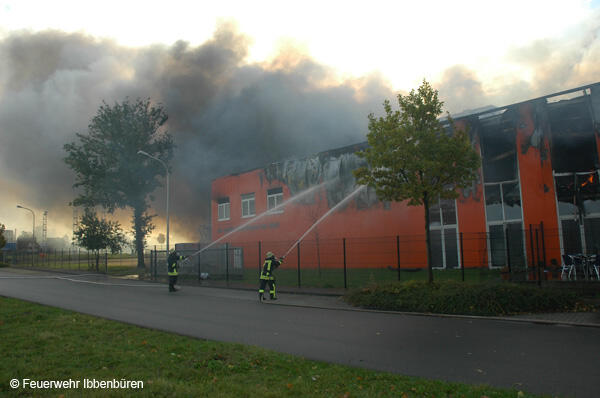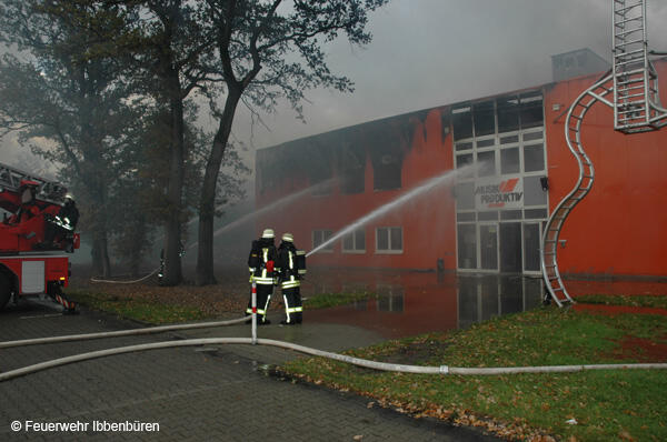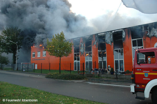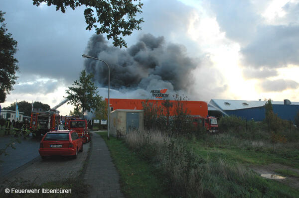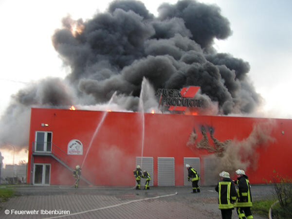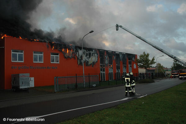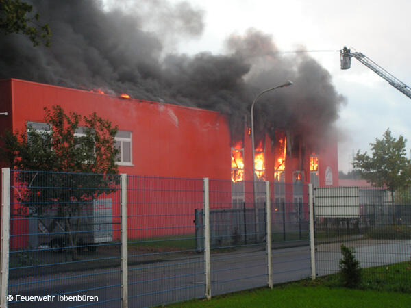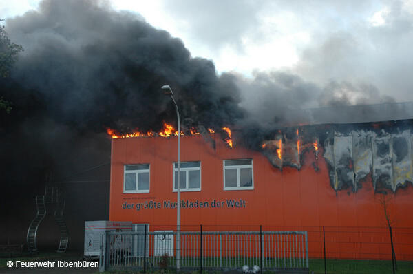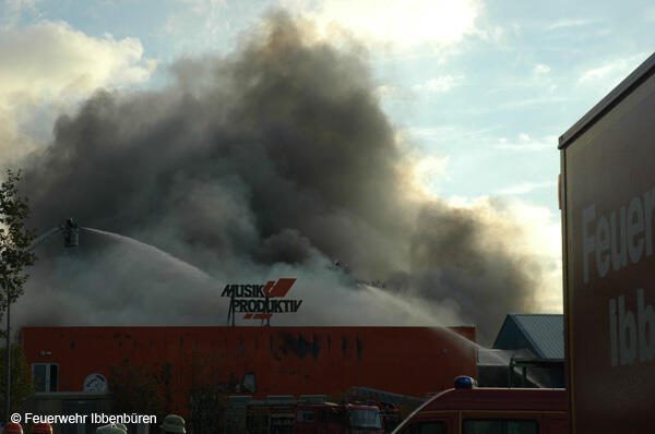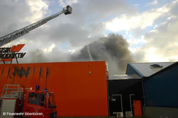 Um 07:23 Uhr wurde die Freiwillige Feuerwehr Ibbenbüren am Sonntag, dem 29.10.2006, zu einem Brand im Gewerbetrieb, bei "Musik Produktiv" in Laggenbeck, alarmiert. "Brandmeldeanlage" war zunächst das Alarmstichwort - wie schon vier Mal in diesem Jahr. Bislang immer mit dem Ergebnis "Fehlalarm". Diesmal war es aber anders...