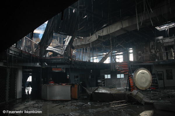 Nachdem das Feuer gelöscht war wurden noch übriggebliebene, einzelne Klaviere geborgen und ins Freie gebracht. Der größte Teil des Inventars war aber verbrannt. In der Halle waren das Foyer, ein Teil der Ausstellung (Blasinstrumente, Book-Shop, Akustikgitarren, Klaviere), ein Bistro und die Büros untergebracht. Die anderen Hallen, auf die ein Übergreifen des Feuers verhindert werden konnte, beinhalten weitere Ausstellungsflächen (Licht, Drums, E-Gitarren) sowie Lager und Logistik.