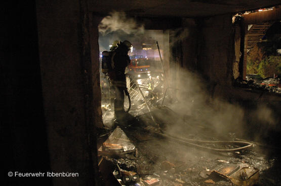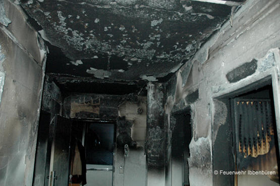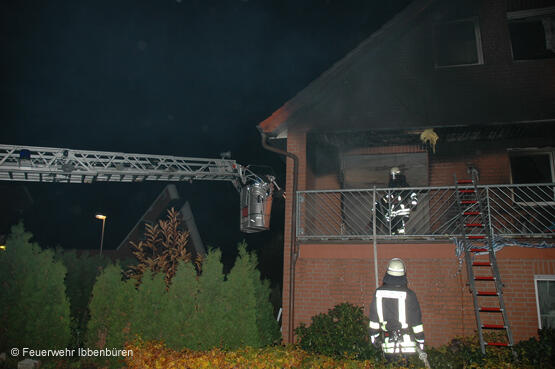 Die Feuerwehr Ibbenbüren wurde am späten Samstagnachmittag zu einem Zimmerbrand in der Clara-Schumann-Straße, in der Siedlung Alstedder Loh, alarmiert. Die ersteintreffenden Kräfte vom Rettungsdienst meldeten den Vollbrand einer Wohnung im ersten Obergeschoss nach Gefäßzerknall.