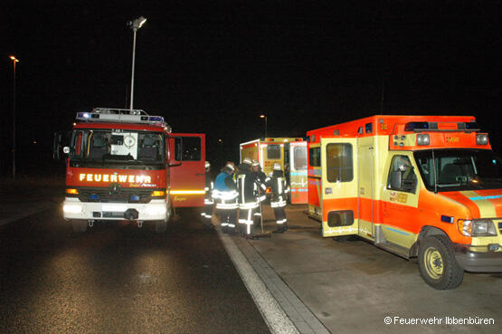 In der Nacht vom ersten auf den zweiten Weihnachtstag 2006 wurde die Feuerwehr Ibbenbüren um 1.16 Uhr zur technischen Hilfe auf der Autobahn alarmiert.