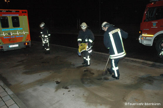 Auf der A 30, genauer auf dem Rastplatz Brockbachtal-Süd (also Fahrtrichtung Hannover, zwischen den AS Laggenbeck und Lotte - ehemals Rastplatz "Hambüren"), stand ein Intensivtransporter des ASB, bei dem Diesel auslief. Durch das Ausschalten des Motors konnte der Kraftstofffluss gestoppt werden. Der ausgelaufene Kraftstoff wurde mit Bindemittel abgestreut und aufgenommen.