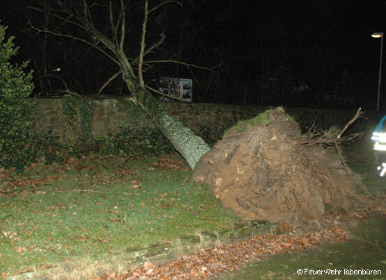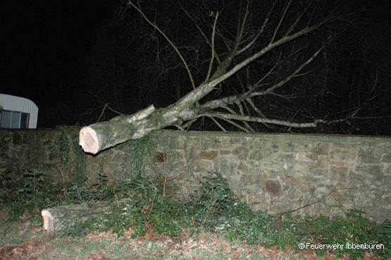 In der Nacht von Samstag auf Sonntag, den 31.12.2006, brachte ein Sturmtief Regen und kräftigen Wind mit Böen bis Stärke 10 auch nach Ibbenbüren. Prompt wurde die Feuerwehr zur technischen Hilfe "Baum auf Straße" alarmiert.