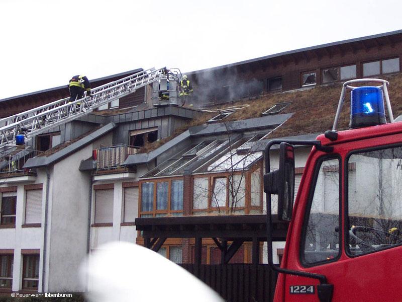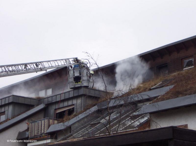 Beim Eintreffen der ersten Kräfte drang starker Rauch aus Fenstern im 2. OG. Die Dachgeschosswohnung eines Mehrfamilienhauses an der Eisenstraße/Abzweig Steigereck brannte in voller Ausdehnung.