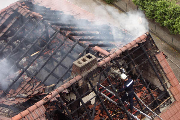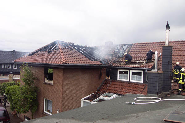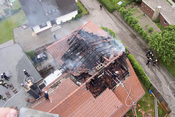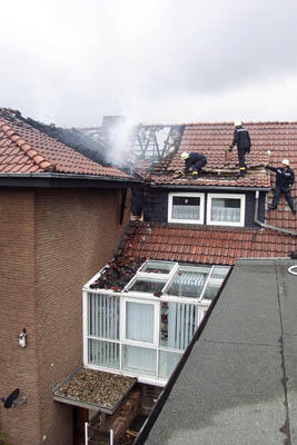 In dem verwinkelten, mehrgeschossigem Wohnhaus war es nicht einfach, das Feuer unter Kontrolle zu bringen.An der Brandwand zur Nachbarwohnung konnte es aber gehalten werden.