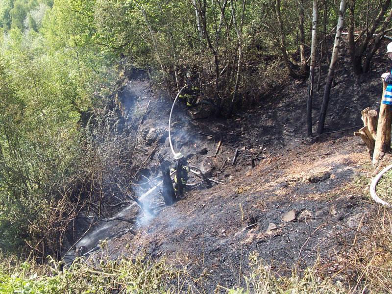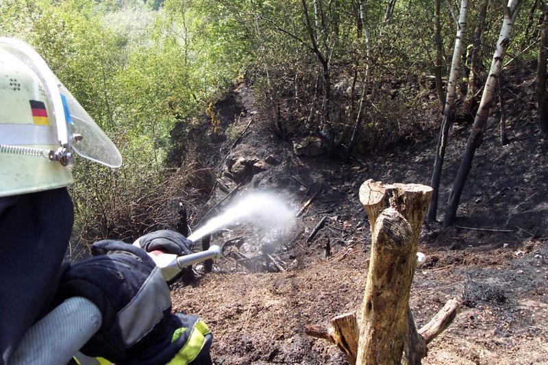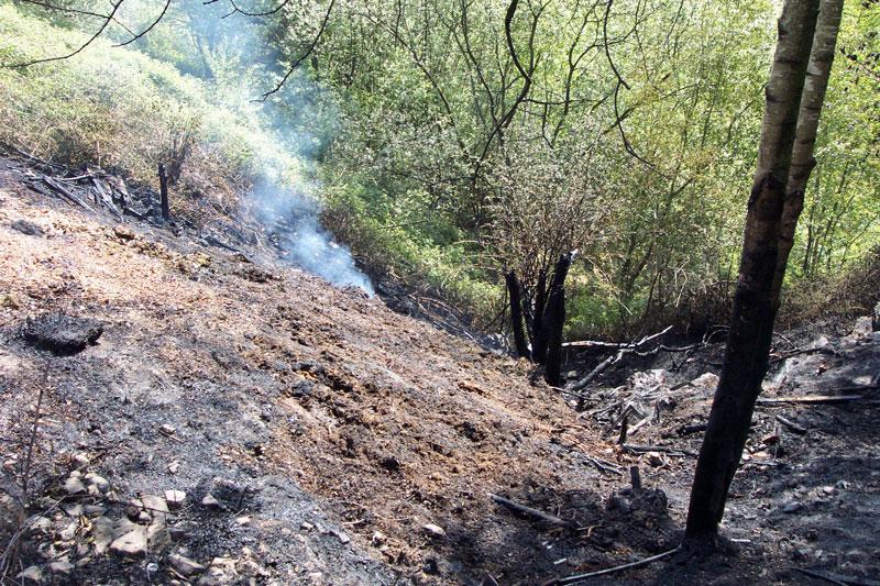 Es brannten auf ca. 300 m² extremer Hanglage Unterholz und ein paar Bäume in einem ehemaligen Steinbruch.