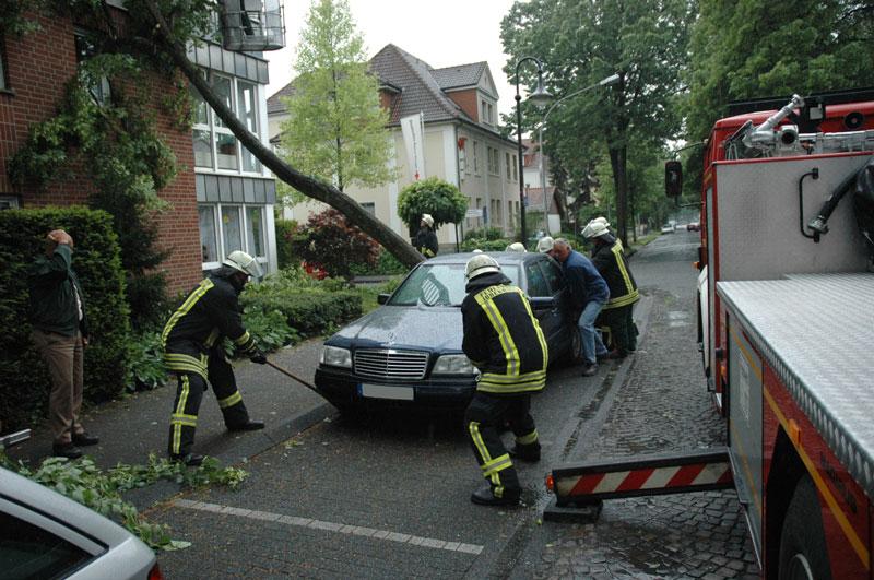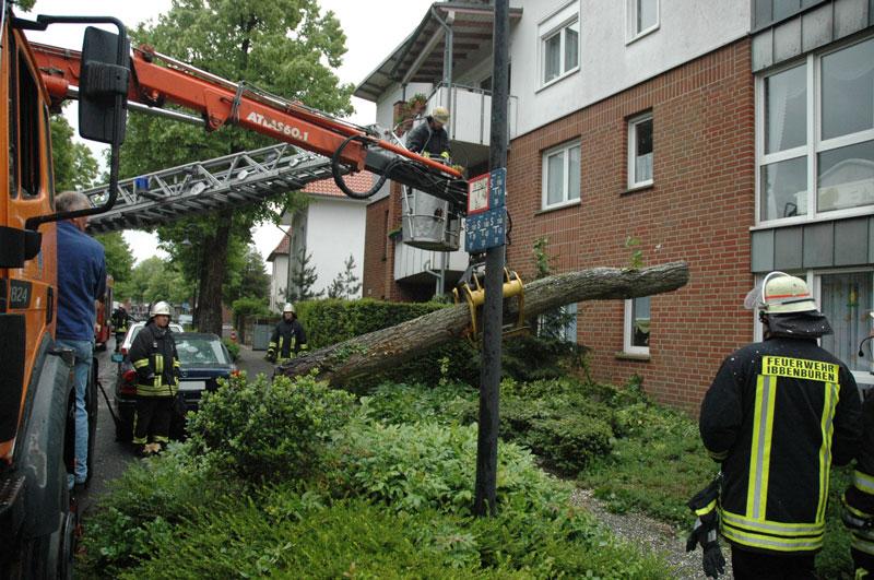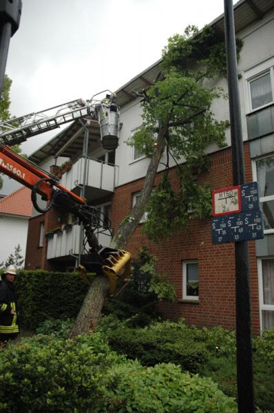 In der Groner Allee knickte ein Baum um, der gegen ein 3-geschossiges Wohnhaus stürzte.