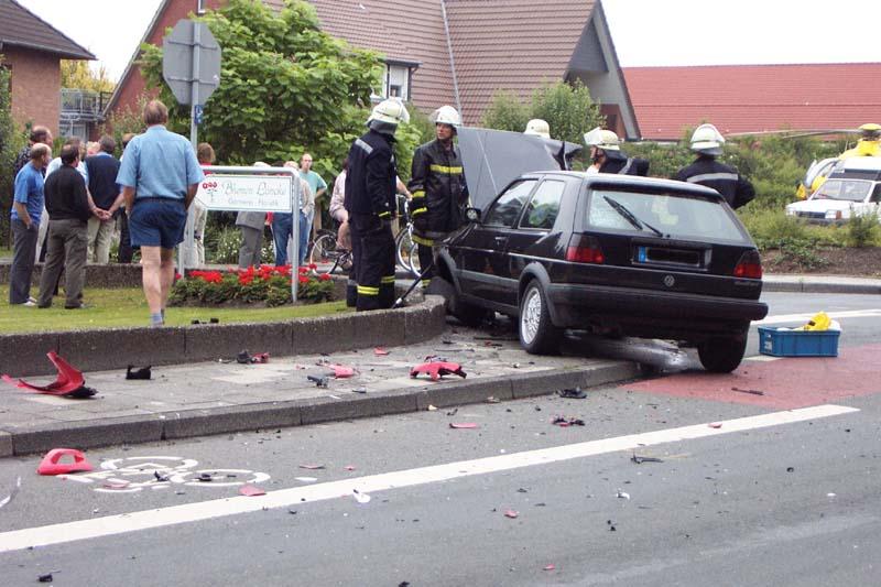Zu einem schweren Verkehrsunfall wurde der Rettungsdienst der Wache Ibbenbüren am Sonntagvormittag alarmiert. Ein von der Nordstraße kommender Pkw war beim Überqueren der L 501 mit einem Motorrad kollidiert.Das Mottorrad kam nach ca. 30 m Flug an einer Hauswand, der Motarradfahrer nach gut 83 Metern auf der Straße zum Liegen. Der Motorradfahrer wurde nach der Erstversorgung mit lebensgefährlichen Verletzungen vom RTH "Euro 2" in eine Klinik nach Münster geflogen. Die Insassen des Pkw kamen mit dem Schrecken bzw. einem Schock davon.