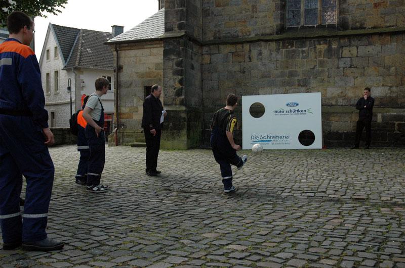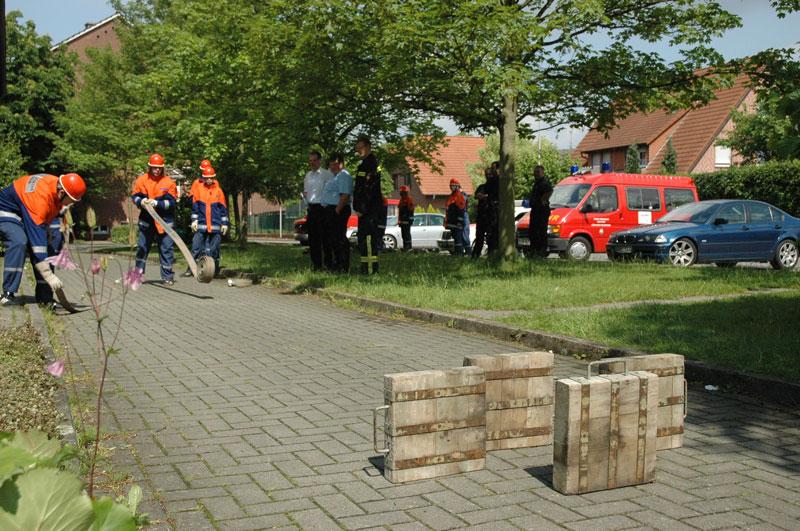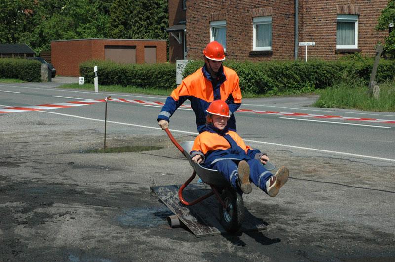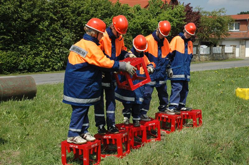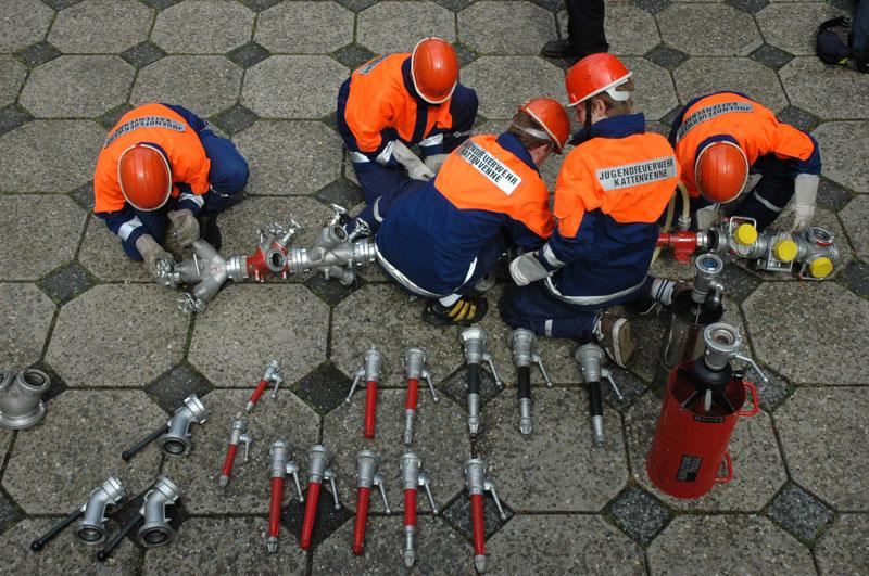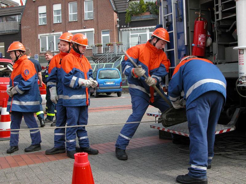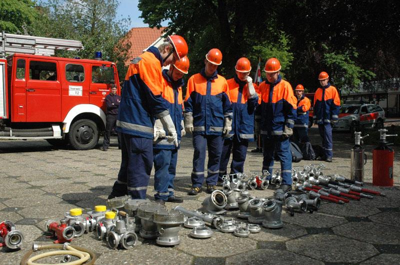 So mussten die Jugendlichen zum Beispiel einen bereitstehenden LKW mittels einer von Hand betriebenen Zugeinrichtung über eine Distanz von 5 m bewegen oder aber verschiedenste Armaturen zu einem zusammenhängenden Gebilde zusammenkuppeln.