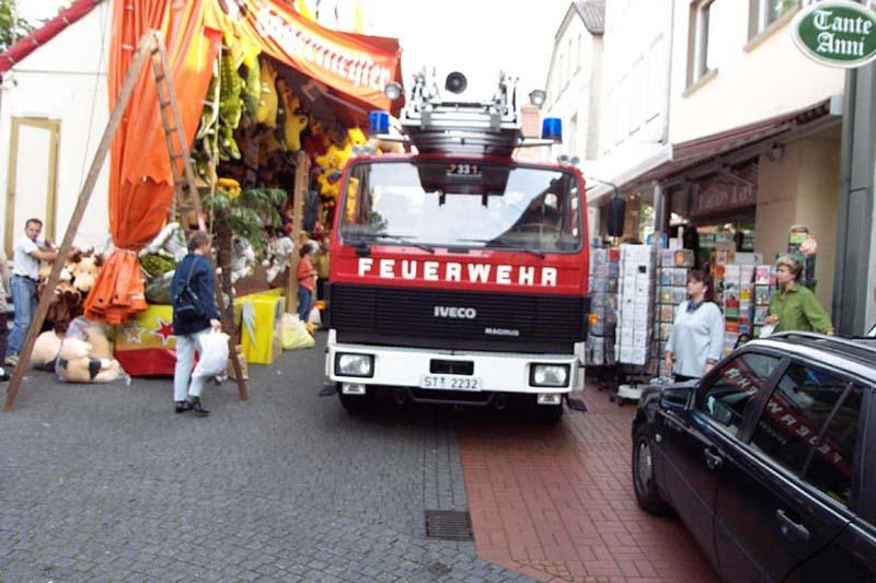 Zur traditionellen Großkirmes in der Ibbenbürner Innenstadt - in den 4 Tagen werden wohl wieder insgesamt an die 250.000 Menschen die Kirmes besuchen - stellt die Feuerwehr Ibbenbüren in diesem Jahr erstmals eine erhöhte Wachbereitschaft.Das gestiegene Sicherheitsbedürfnis und die erhöhte Sensibilisierung gegenüber Gefahrenpotentialen war Veranlassung dafür, in diesem Jahr erstmals sowohl eine verstärkte Mannschaft auf der ohnehin ständig besetzten Feuer- und Rettungswache, als auch eine mobile Feuerwache direkt auf der Kirmes zu platzieren.