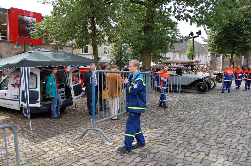 Am Samstag um 08:00 ging es in die 17. Runde Schnauferltreffen in der Ibbenbürener Innenstadt. Seit 1990 begleitet die Jugendfeuerwehr Ibbenbüren die Oldtimerveranstaltung der Stadt Ibbenbüren. Mittlerweile die 21. Veranstaltung wenn man die beiden Grand-Prix-Wagen-Festivalls und die beiden Bugatti-Treffen hinzuzählt.