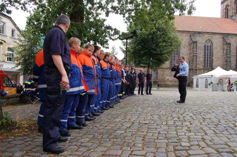 Die knapp 50 Kameraden setzen sich aus den Löschzügen Dörenthe, Laggenbeck und der Stadtmitte 1+2 sowie der Jugendfeuerwehr und der THW Jugend zusammen. Das mittlerweile eingespiele "Team" verrichtete routiniert ihren Dienst.