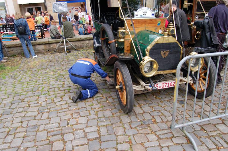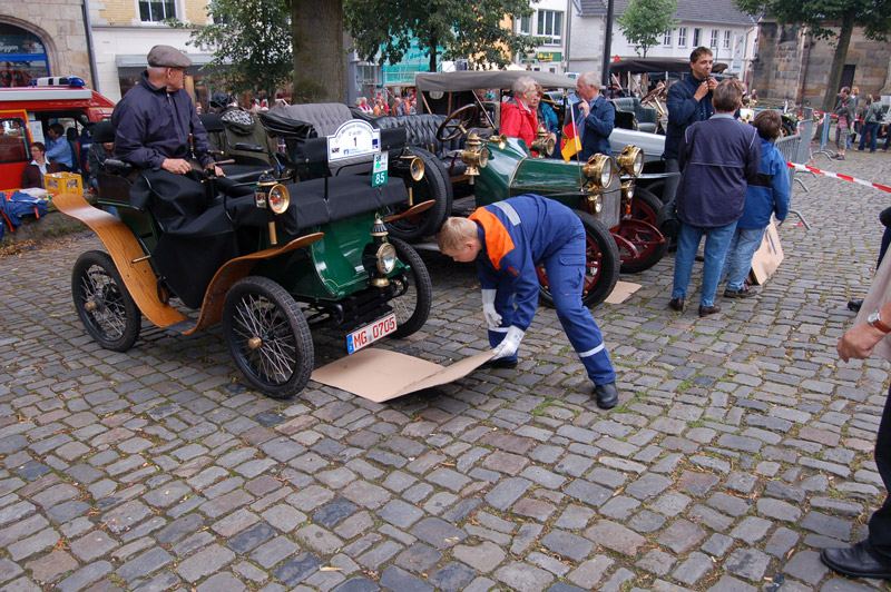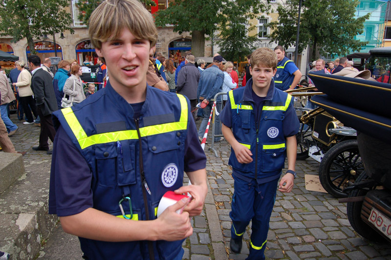 Aufgabe ist es immer die Streckenführung vom Rathaus bis hin zum Christuskirchplatz aufzubauen und auf dem Kirchplatz die "Schnauferl" passend in ihre Parklücken zu lotsen. Natürlich gehört der "Ölpappenservice" der Umwelt zu Liebe immer mit dazu.