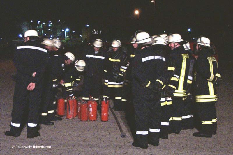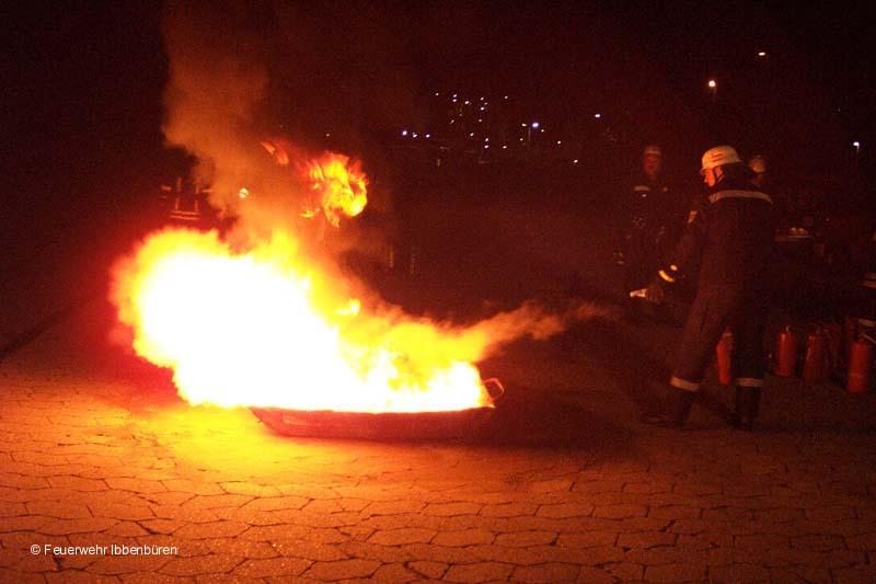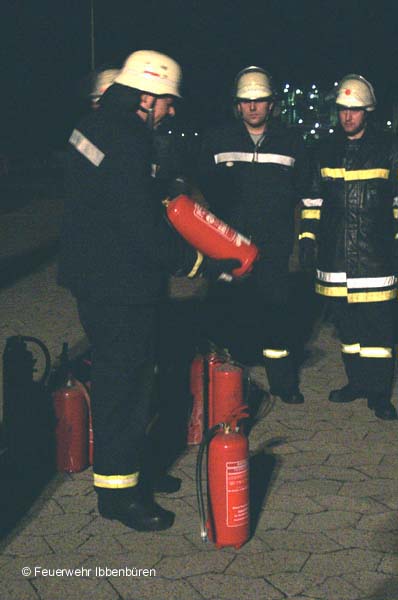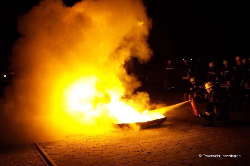 Hand auf's Herz: wer hat schon mal einen Feuerlöscher im Ernstfall eingesetzt? Gerade im beruflichen und privaten Bereich kann aber jeder zu jeder Zeit plötzlich damit konfrontiert werden. Und dann? Es müssen die richtigen Handgriffe gemacht werden, es muss effektiv sein und es muss schnell gehen!Und gerade von uns Feuerwehrleuten wird natürlich - zu Recht - erwartet, dass der Umgang mit Löschern eine Selbstverständlichkeit ist. Aber auch hier macht Übung den Meister! Die Feuerwehr Ibbenbüren bietet deshalb immer wiederkehrend im Rahmen der Ausbildung an regulären Dienstabenden Feuerlöscherübungen an. Nach einer theoretischen Einweisung werden dann entsprechende Löschtaktiken mit unerschiedlichen Löschermodellen geübt.