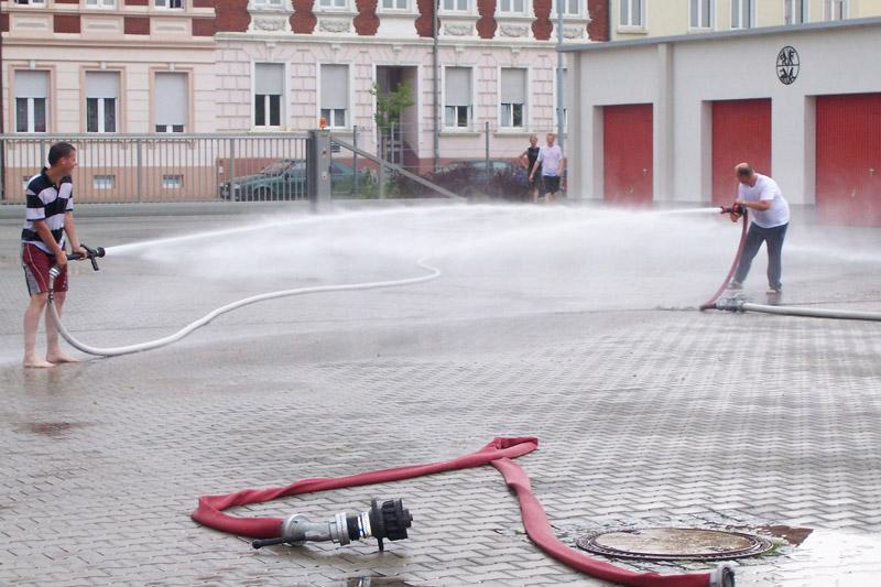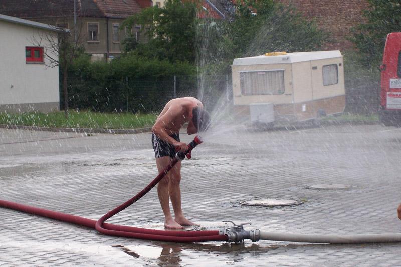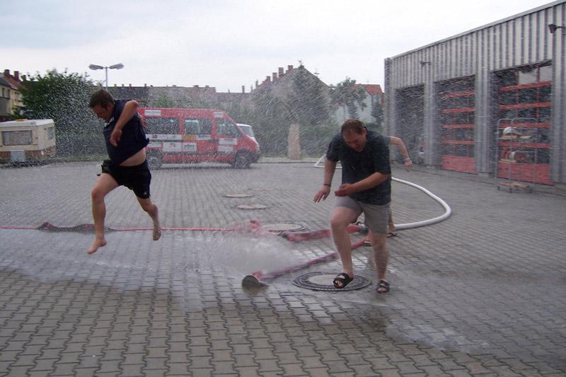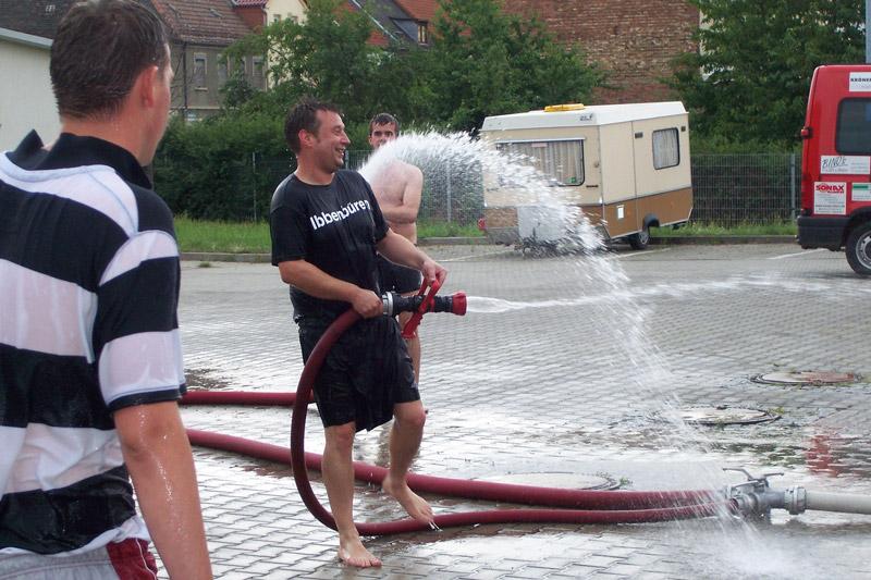 Anschließend war eigentlich ein Besuch des Hallenbades von Roßlau geplant. Dieses wurde aber aufgrund des guten Wetters gegen eine Wasserschlacht auf dem Hof der Citywache Roßlau ausgetaucht. Der Spaßfaktor wäre auch in einem Schwimmbad kaum zu erreichen gewesen.