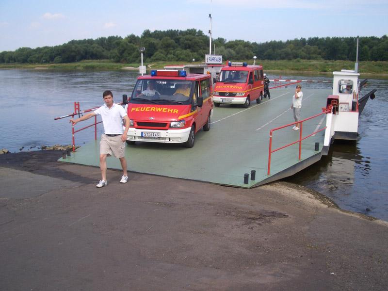 Da wir alle nicht wirkliche Frühaufsteher waren, gab es erst um 10:30 h Frühstück. Der nächste Termin war um 15 Uhr geplant mit dem Besuch eines Feuerwehrmuseums. Die Zeit bis dahin hatten wir zur freien Verfügung und unternahmen eine Fahrt in die Innenstadt von Dessau. Natürlich blieb eine Fahrt mit den Elb-Fähren nicht aus.