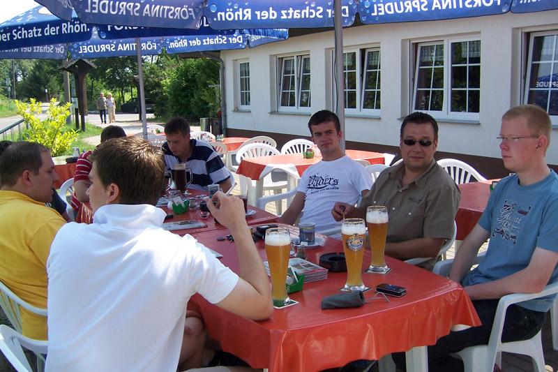 Diese Antwort tat unserer Planung nach Roßlau zu fahren aber keinen Abbruch. Während wir noch auf der Hinfahrt waren, wurde in Roßlau alles spontan vorbereitet: Getränke wurden organisiert, Essen vorbereitet (Danke noch mal Michael, der Toast Hawaii war Spitze!) und sogar ein Begrüßungskomitee wurde auf die Beine gestellt.