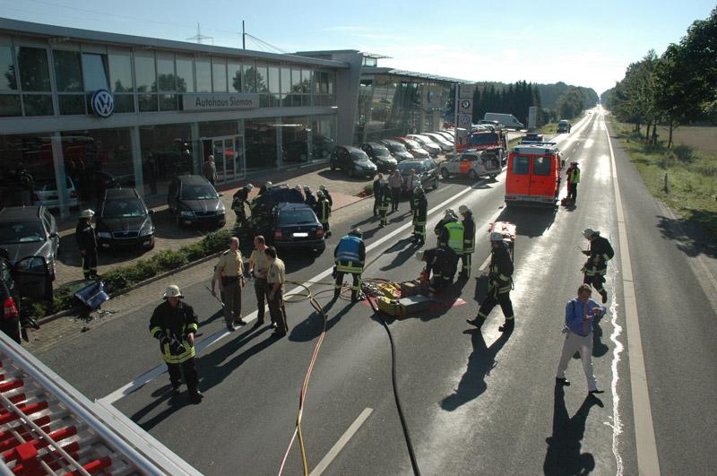 Am Mittwochmorgen, dem 1. August 2007, ereignete sich auf der Osnabrücker Straße in Ibbenbüren ein schwerer Verkehrsunfall, zu dem die Freiwillige Feuerwehr Ibbenbüren mit den Zügen Stadtmitte 1 und Laggenbeck Alarmiert wurde.