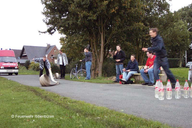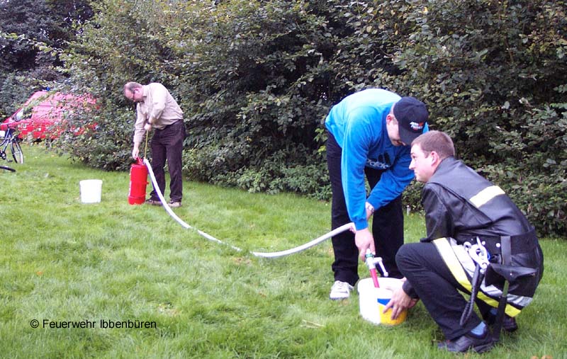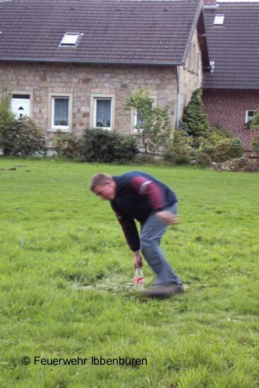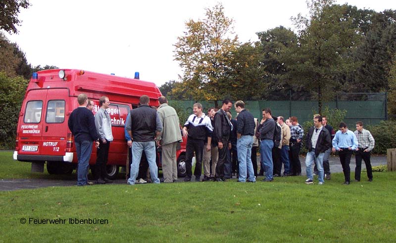 Der alljährlich stattfindende Kameradschaftsabend der Jugendfeuerwehrwarte und -ausbilder auf Kreisebene fand dieses Mal in Ibbenbüren statt. Ibbenbüren - zweitgrößter Ort im Kreis Steinfurt mit etwa 50.000 Einwohnern und je 2 Stadt- und Außenlöschzügen - hat seit 1977 eine eigene Jugendfeuerwehr. Zzt. gehören ihr 20 Mitglieder und 4 Ausbilder/Betreuer an.Von 16 Jugendfeuerwehrleuten - durch 2 aktive Kameraden unterstützt - wurde ein "Aaseelauf" der etwas anderen Art vorbereitet. Ohne Vorwarnung wurden die rund 40 Gäste in so manches kleine Abenteuer geschickt - ganz so, wie es die Ausbilder sonst gerne selber für die Jungs organisieren... Der Spaß stand ganz klar im Vordergrund, und so wurde in den ausgelosten Gruppen nicht alles so verbissen gesehen. Die Schiedsrichter sollen aber recht streng gewesen sein.