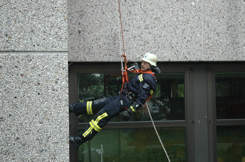 Im Vordergrund aller Übungen stand nicht wie bei Höhenrettern die Rettung von Personen aus Notlagen, sondern die Eigensicherung der Einsatzkräfte in gefährdeten Bereichen.