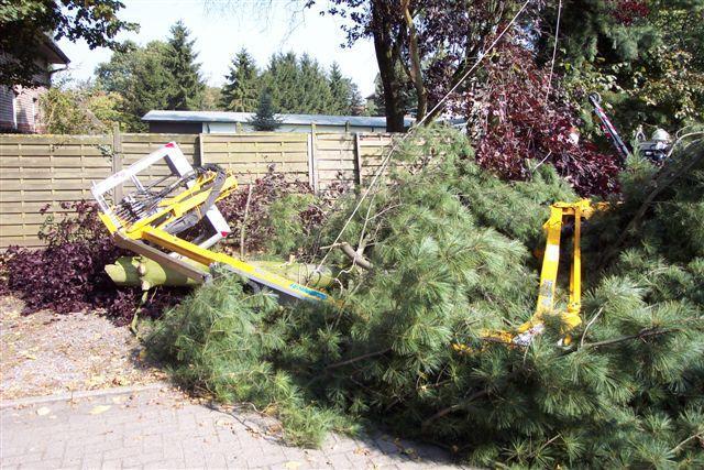 Person eingeklemmt unter Baum.