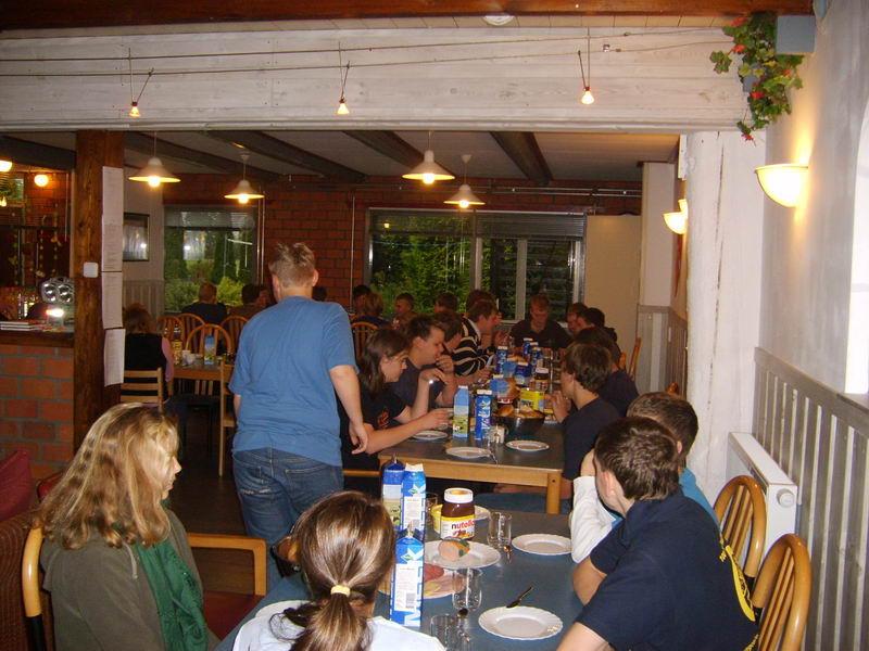 Nachdem wir uns häuslich eingerichtet hatten und auch der Wimpel an der Wand hing, konnten wir schon zum obligatorischen Einteilen der Putz- und Küchendienstgruppen übergehen und uns noch einmal die Lagerregularien vor Augen führen.