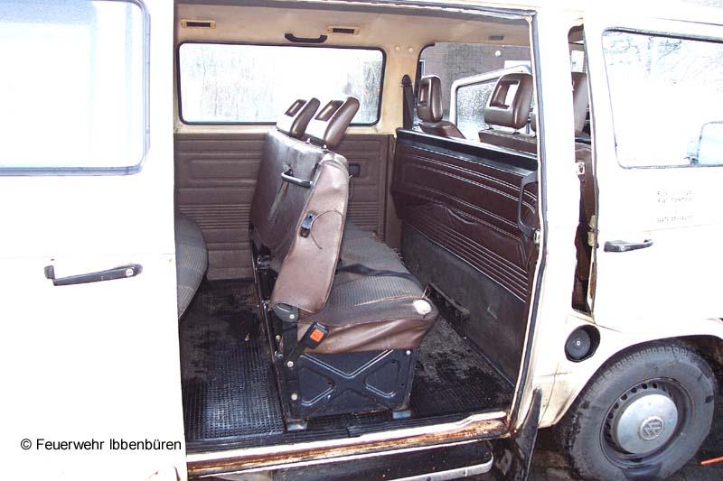 Der Fahrer des VW Transporters war hinter dem Lenkrad eingeklemmt und musste mit hydraulischem Rettungsgerät befreit werden. Auch die Begleitperson und die sechs Schulkinder wurden alle zunächst im verunglückten Fahrzeug versorgt und dann in den RTWs weiterbehandelt.