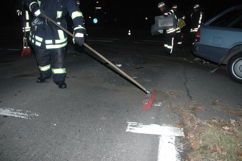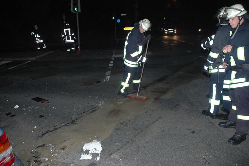 Die Unfallstelle wurde ausgeleuchtet und die Fahrzeugbatterien abgeklemmt. Bei den Unfallfahrzeugen