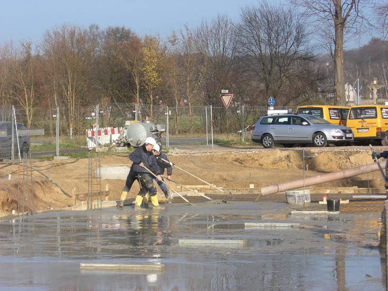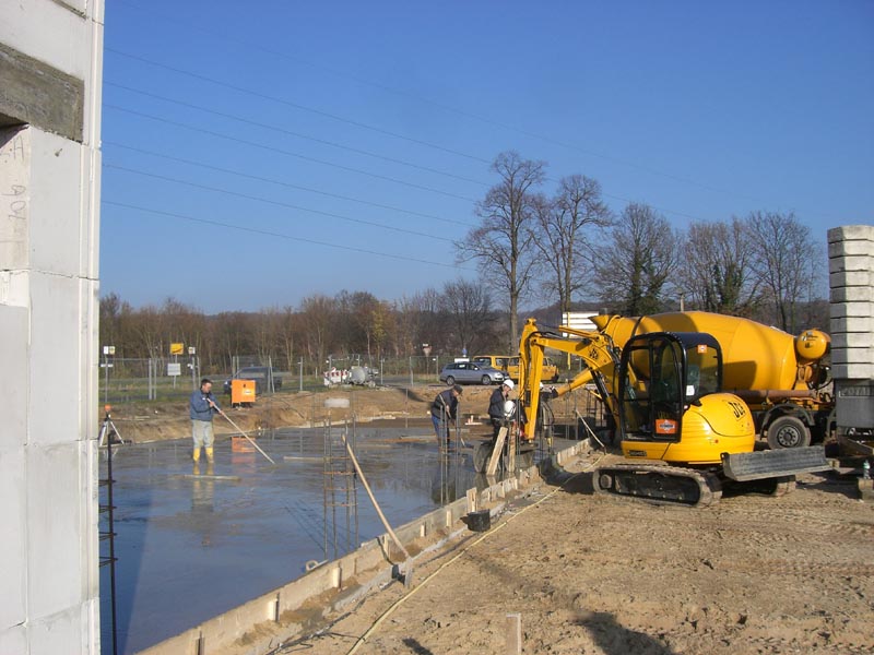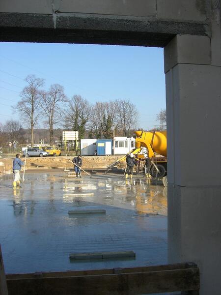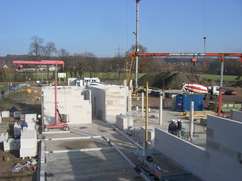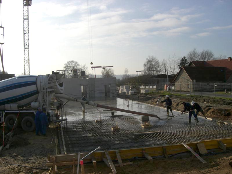 Die Bodenplatte der RTW-Halle (nördlicher Bauabschnitt) wurde gegossen. Im mittleren Bauabschnitt gehen die Maurerarbeiten zügig voran.