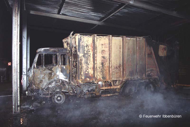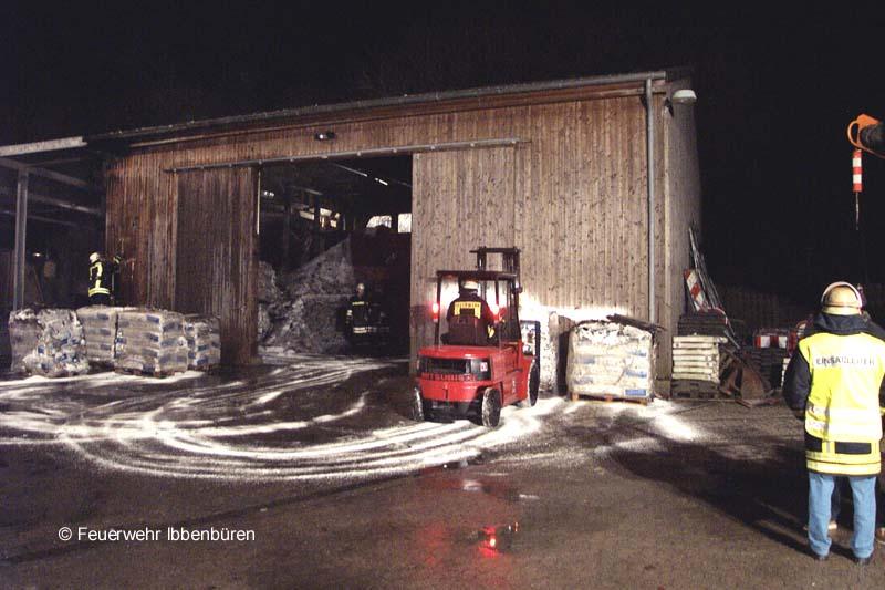 Der nebenan wohnende Hausmeister hatte schnell die Schlüssel der im Feuer stehenden Müllfahrzeuge parat, so dass es den ersten Kräften vor Ort noch gelang, zwei Müllwagen rechtzeitig herauszufahren. Ein drittes Müllfahrzeug brannte allerdings völlig aus. Weiter beschädigt oder durch das Feuer zerstört wurden u.a. zwei Teermaschinen, ein Pkw-Anhänger, eine Walze und eine komplette Lkw-Ladung fabrikneuer "gelber Säcke". Auch die angrenzende Salzhalle - mit 120 Tonnen Streugut gefüllt - wurde stark beschädigt.