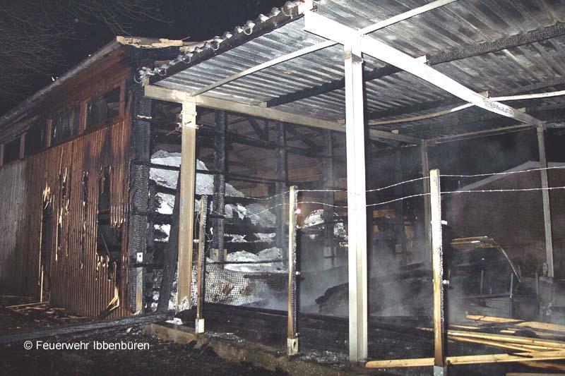Gegen 4.00 Uhr folgte dann der zweite Alarm: Auf dem Gelände des städtischen Bauhofs, An der Diekwiese, brannte eine 30 x 10 Meter große Halle.