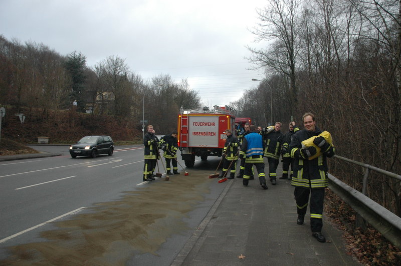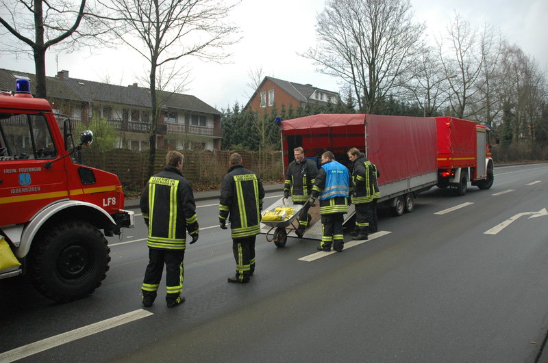 Die 25 Kräfte des Löschzugs Stadtmitte 2 streuten die Fahrbahn ab und