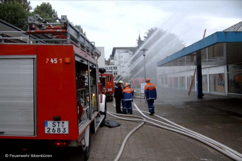 Als Einsatzobjekt diente das Kaufhaus Karstadt, welches laut Übungsvorgabe im Obergeschoss in voller Ausdehnung brannte. Im Zuge dessen hatten sich im näheren Umkreis noch zwei Verkehrsunfälle ereignet.