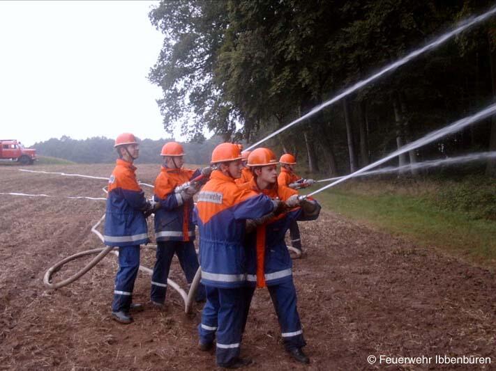 Folgende Lage bot sich den Einsatzkräften: im Wersener Schierholz, nahe der Tecklenburger Nordbahn, war ein heftiger Waldbrand entfacht und musste nun durch massive Löschangriffe bekämpft werden. Das größte Problem stellte in diesem Gebiet die Wasserversorgung dar. Die einzigen Möglichkeiten Wasser in ausreichender Menge an Ort und Stelle zu befördern waren einerseits der Niedringhaus See und andererseits der Präriesee sowie die Düte. Gleich mehrere Jugendfeuerwehren waren gleichzeitig damit beschäftigt die Wasserentnahmestellen herzurichten und die nicht unerheblichen Distanzen mit B-Leitungen zu überbrücken. Insgesamt erstreckten sich an der Einsatzstelle ca. 6,5 km Schlauchleitungen in die 17 Feuerlöschkreisel-pumpen eingebunden waren.