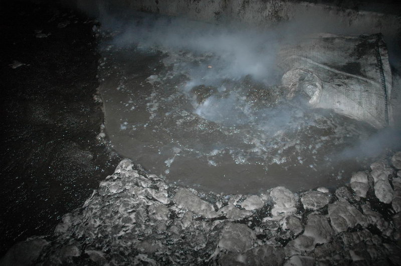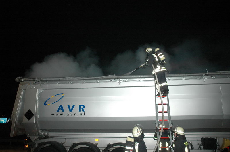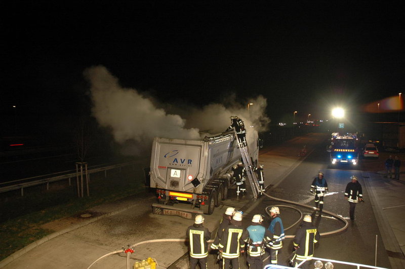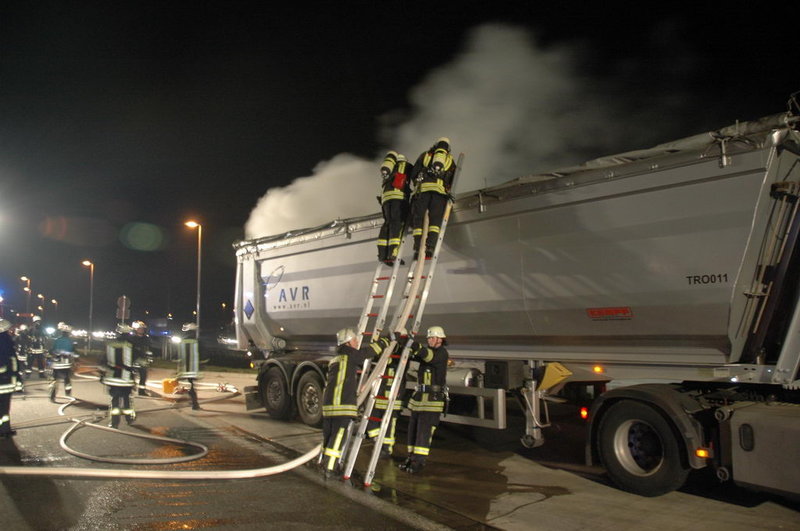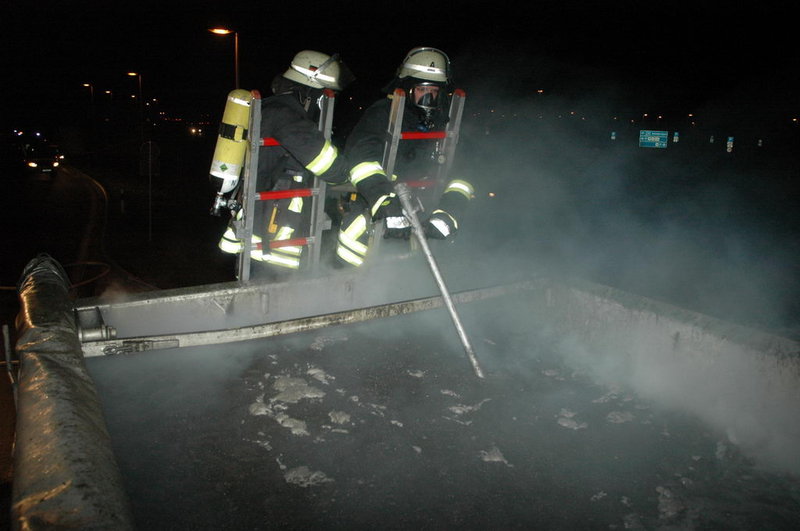 Die ersteintreffenden Kräfte fanden einen stark rauchenden Lkw vor: die Ladung, die aus ölhaltigem Schlamm bestand, hatte sich selbst entzündet und einen Schwelbrand verursacht.