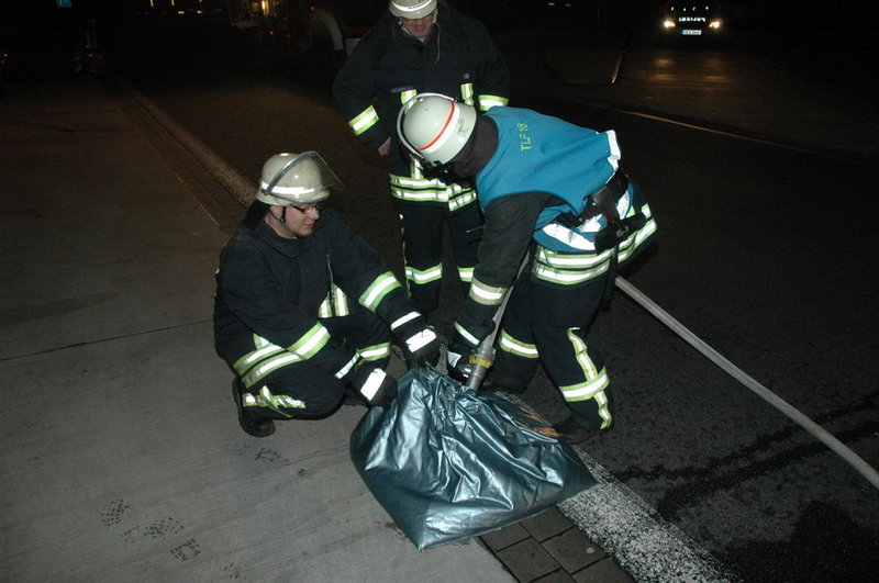 Um das Einlaufen des kontaminierten Löschwassers in die Kanalisation zu verhindern, wurden die Kanalisationseinläufe abgedichtet.