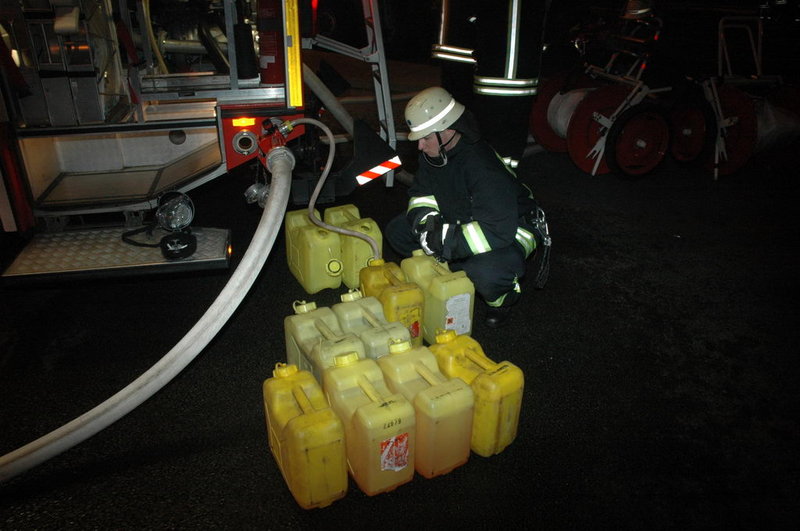 Im Anschluss an die Löscharbeiten wurde vom Lkw das zugeführte Wasser-Schaum-Gemisch von einer Spezialfirma abgesaugt.