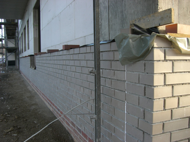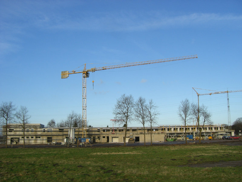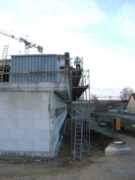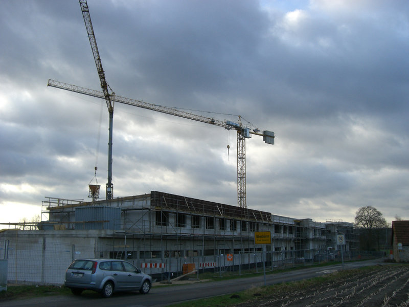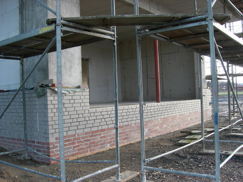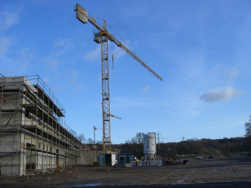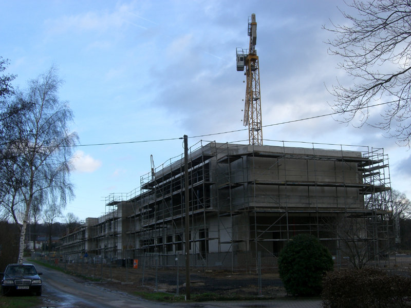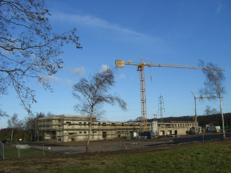 Die Arbeiten am Klinkersockel gehen bei der momentan guten Witterung gut voran. Auf den nachfolgenden Bildern kann man jetzt die Dimensionen des fast 120 Meter langen Hauptgebäudes gut erahnen.
